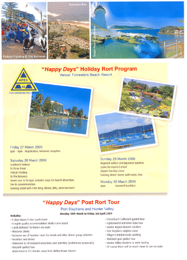 Known as the "Happy Days" Holiday Rort and based on the Central Coast of NSW - The RORT also included a "Fawlty Towers" evening dinner.